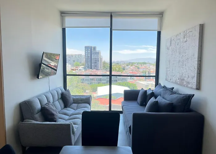 New Cozy Apartment With Terrace, Pool And Gym is in de Zapopan wijk van de stad genesteld en omvat een wellnesscentrum, evenals een dakzwembad. Het appartement van 90 m^2 is te bereiken op ongeveer 5 minuten lopen van Bruno Traven bushalte.